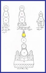 Tormas são esculturas ancestrais criadas por monges, tradicionalmente feitas de uma mistura de farinha e manteiga, usadas em rituais budistas da tradição tibetana. Essas coloridas esculturas de comida representam a mente iluminada e são esculpidas em três partes: base, corpo e decoração, que simbolizam respectivamente as qualidades do corpo, fala e mente de sabedoria do Buda.